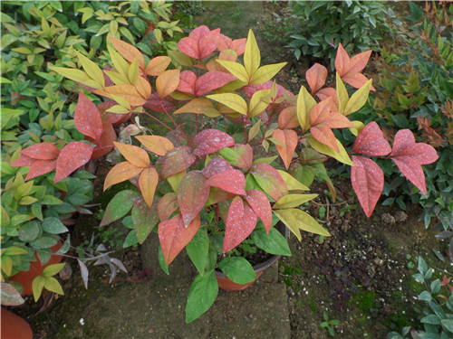 剛開始變紅的火焰南天竹