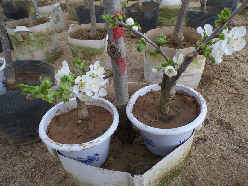 容器選擇 容器應(yīng)與苗木的大小相匹配1~2年生的苗木應(yīng)選擇口沿直徑25~30cm的容器。容器的透氣性要好、對根系無毒害作用。經(jīng)實踐證明素?zé)韬湍就靶Ч詈?紫砂盆、塑料盆次之;含釉質(zhì)的最差,櫻桃上盆后不易成活。
