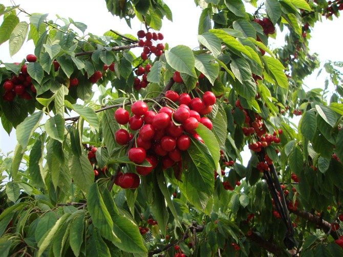 櫻桃栽培中,園地與品種的選擇必須考慮到櫻桃的生長特性,櫻桃樹根系相對不發(fā)達(dá),根系分布較淺,開花早,易受霜害,具有喜肥、喜光的特性,在園地建設(shè)中盡量選擇土壤肥沃、土層深厚、地下水位低、有水澆條件、排水良好的丘陵地區(qū)。櫻桃栽培園地的土質(zhì)應(yīng)以中性、偏酸性的砂壤土、壤土為主,要求地勢盡量開闊,光照條件較為良好,空氣流通順暢。櫻桃屬異花授粉品種,自花授粉不能結(jié)實,或結(jié)實能力很差。在成片規(guī)范化栽培園中,株行距3~4米×4~5米,授粉品種按不少于1/4的比例配置。櫻桃采摘困難,不易貯藏,種植要選擇交通方便的地點。目前,在國內(nèi)栽培的櫻桃以早熟品種為主,常見的主要有:早大果、紅燈、美早、意大利早紅等,中晚熟品種則主要有:佐滕錦、先鋒、那翁、艷陽、雷尼等。昆明地區(qū)主推的品種有大果型的緋紅、早熟的秦林,中晚熟的先鋒。在櫻桃栽培品種的選擇中,應(yīng)遵循早結(jié)果、味甜少酸、大果、豐產(chǎn)、耐低溫,宜運輸,鮮食加工兼用、抗病性強等基本原則。